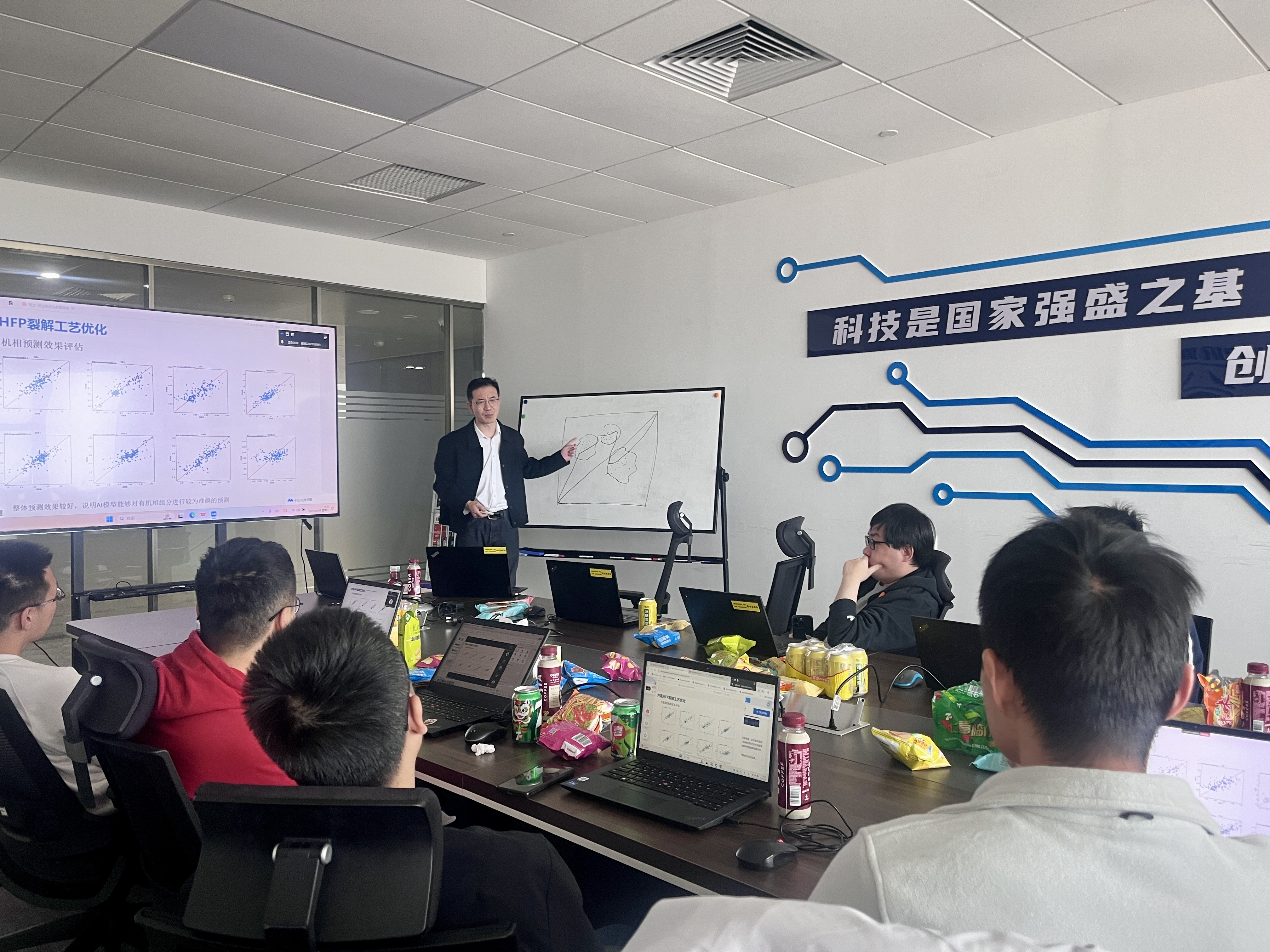 值得一提的是,公司總經理柳彥宏親臨指導,與AI研究院工藝優化算法團隊進行了深入交流。會議采用了創新的"茶歇研討"模式。在輕松的氛圍中,研發人員一邊品嘗茶點,一邊就"數字孿生在工藝優化中的應用邊界"等問題展開自由討論,碰撞出不少跨學科的新思路。柳總也參與其中,與年輕工程師們親切交流,鼓勵大家"保持學術好奇心,同時緊盯產業需求"。