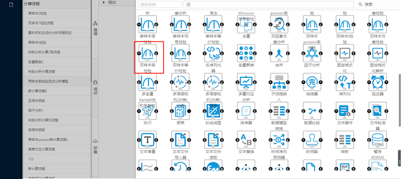 采用拖取的形式從數據大腦中的組件面板查找雙樣本率檢驗組件,拖到到工作面板。