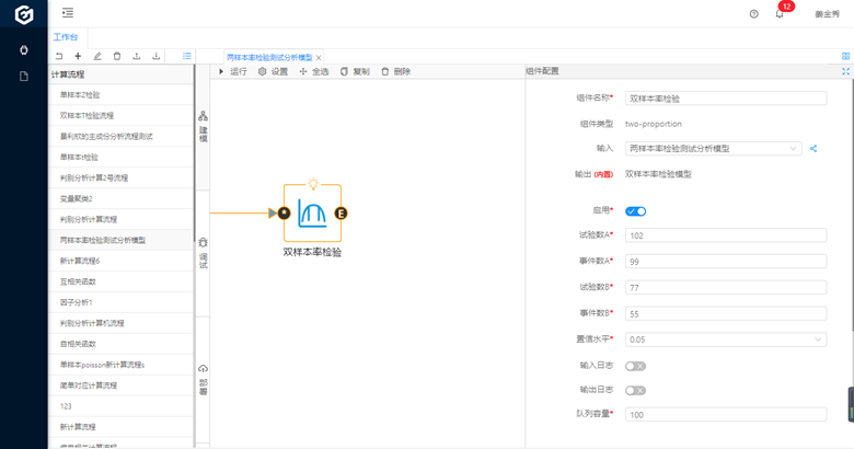 在本篇,我們通過一個完整的案例來演示國工智能數據大腦平臺的數據分析能力。案例中我們主要用到的算法組件是雙樣本率檢驗。