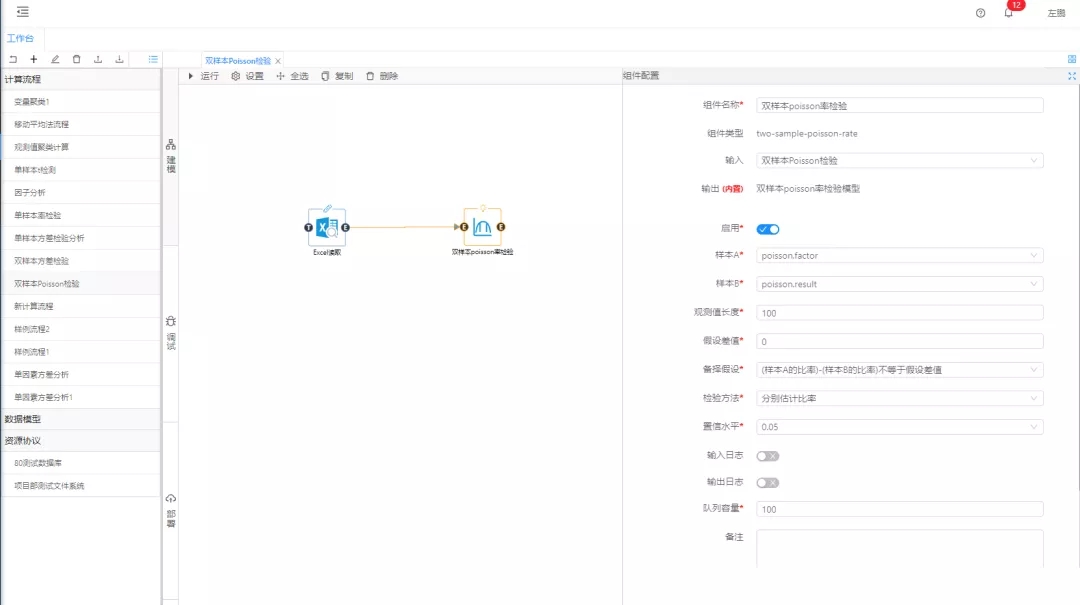 近年來,數據挖掘引起了信息產業界的極大關注,其主要原因是企業在生產、運營過程中產生大量的數據,迫切的需要將這些數據轉換成有用的信息和知識。獲取的信息和知識可以廣泛用于各種應用,包括商務管理,生產控制,市場分析,工程設計和科學探索等。國工智能實驗室LIMS系統融合了國工智能數據大腦平臺,平臺內提供上百種統計學相關算法及機器學習算法;通過這些算法對企業數據進行分類分析、聚類分析、關聯分析、預測分析,挖掘數據潛在價值,探索人力無法探知的規律,提高企業產品附加值及行業競爭力,助力企業快速發展。本次案例就雙樣本Poisson檢驗與實驗室LIMS系統相融合進行探討及應用舉例。