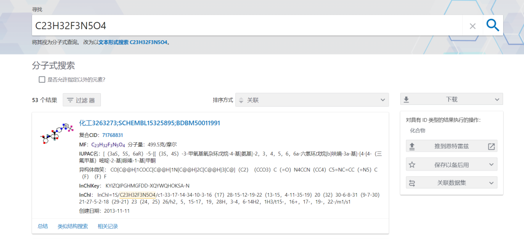 如圖6所示,可以查詢到該分子式的相關(guān)化學(xué)信息。