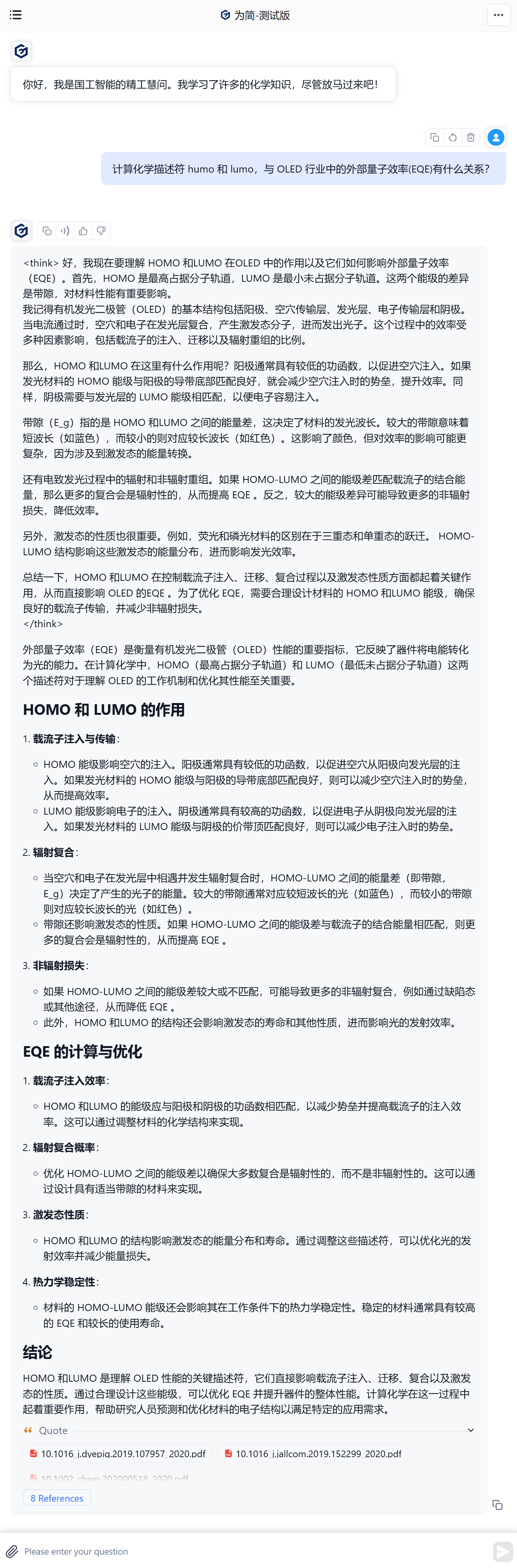 計算化學描述符 humo 和lumo,與 OLED 行業中的外部量子效率(EQE)有什么關系?