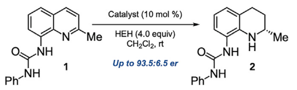 圖1. 選擇的測試反應:8-氨基喹啉移氫化反應