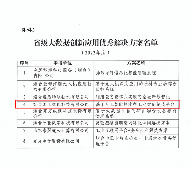 為深入推進大數據創新應用,省、市兩級大數據部門組織開展了“2022年度全省大數據創新應用成果”評選工作,國工智能“基于人工智能的流程工業智能制造平臺”成功入選省級大數據創新應用優秀解決方案名單。