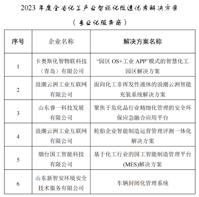 《山東僅5家國工智能與海爾、浪潮同時被認(rèn)定為化工產(chǎn)業(yè)智能化改造優(yōu)秀解決方案專業(yè)服務(wù)》